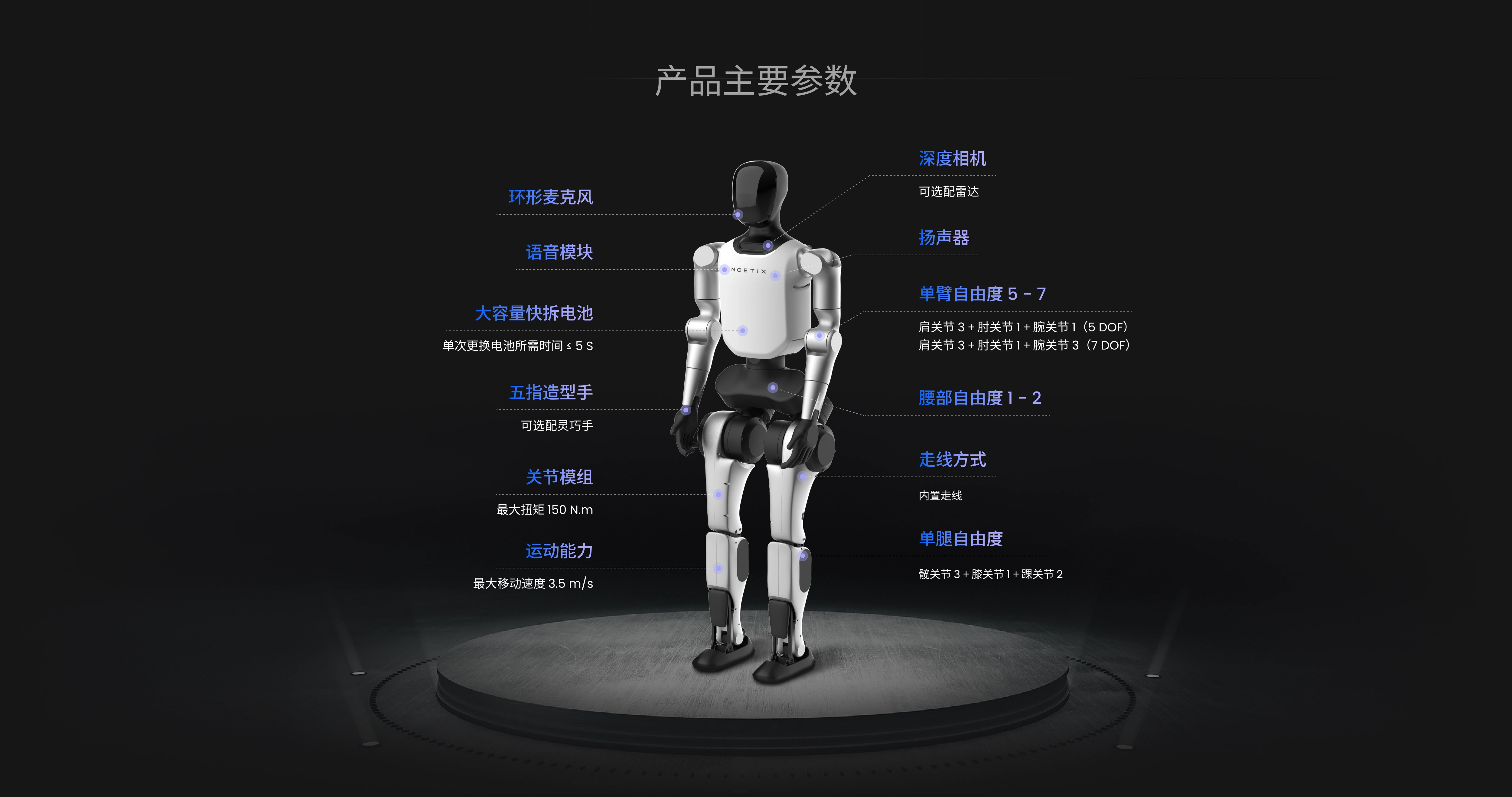 【2】最大扭矩、手臂最大载荷、续航时间等为实验室环境下测得。