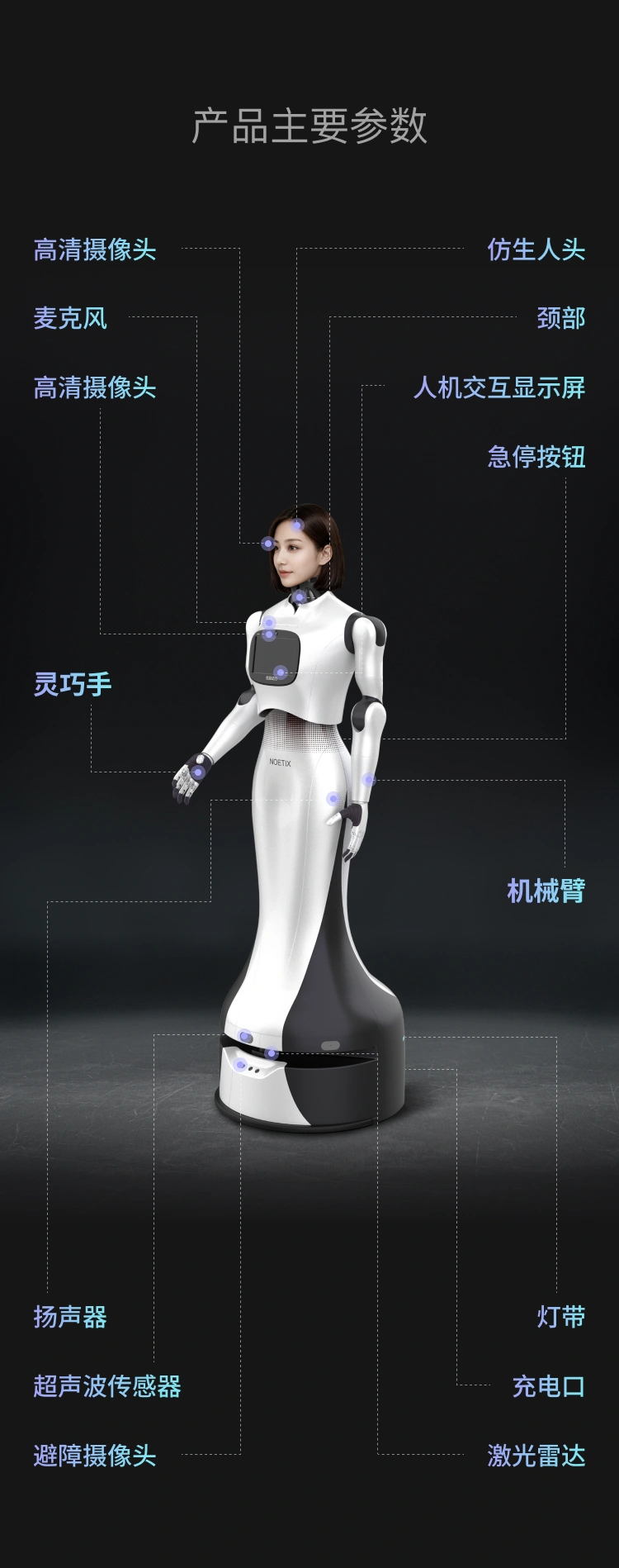 【6】机器人结构复杂,动力极其强劲,请用户让人和机器人保持足够的安全距离,请务必小心使用。